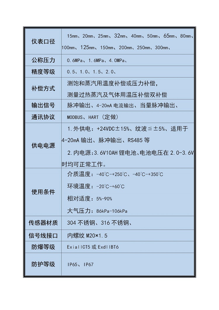 1. 渦街流量計具體適合工況參數(shù)見渦街流量計說明書